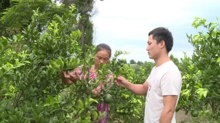 村民查看沃柑的生长情况。