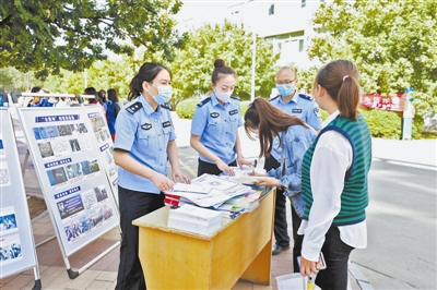 崇文路派出所、国保大队、巡特警大队民警来到榆林学院开展电信诈骗预警防范宣传。向同学们介绍了新型电信诈骗类型的本质及特点,以身边的真实案例向大家介绍了刷单诈骗、贷款诈骗、冒充老师同学诈骗、冒充公检法诈骗、网恋诈骗等八种常见电信诈骗方式,并发放了反诈防骗告知书。