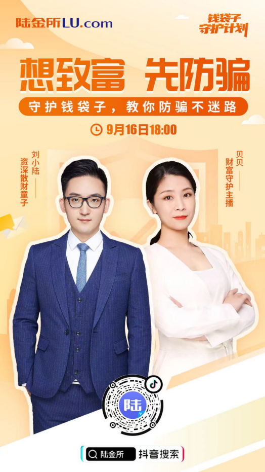 据悉,陆金所控股在本次计划中围绕金融科普核心,输出"想致富、先防骗"的用户认知,如在陆金所APP、视频号及抖音以直播网综等形式,由金融专家、陆金所客服实时答疑;针对高发诈骗案例如虚假电话、虚假APP、贷款诈骗等,制作系列情景社交短剧;联合新浪黑猫平台,在微博、新闻媒体结合实际案例进行套路拆解、知识普及。