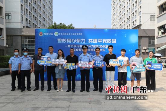 丹灶派出所联合高校开展平安校园宣传月系列活动。通讯员供图中新网广东新闻9月15日电 (程景伟 吴玮琛 李健威)佛山市公安局南海分局丹灶派出所近日联合广东环境保护工程职业学院(以下简称“环保学院”)开展“平安校园宣传月”启动仪式,预示着“警校同心聚力,共建平安校园”——党史学习教育“我为群众办实事”之平安校园宣传月系列活动同步开启。