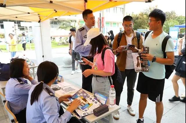 民警以发放宣传资料、关注防范公众号、安全知识解答、参加防范技能问答并发放小礼物的方式为在校学生普及各类防范电信网络诈骗的要点。