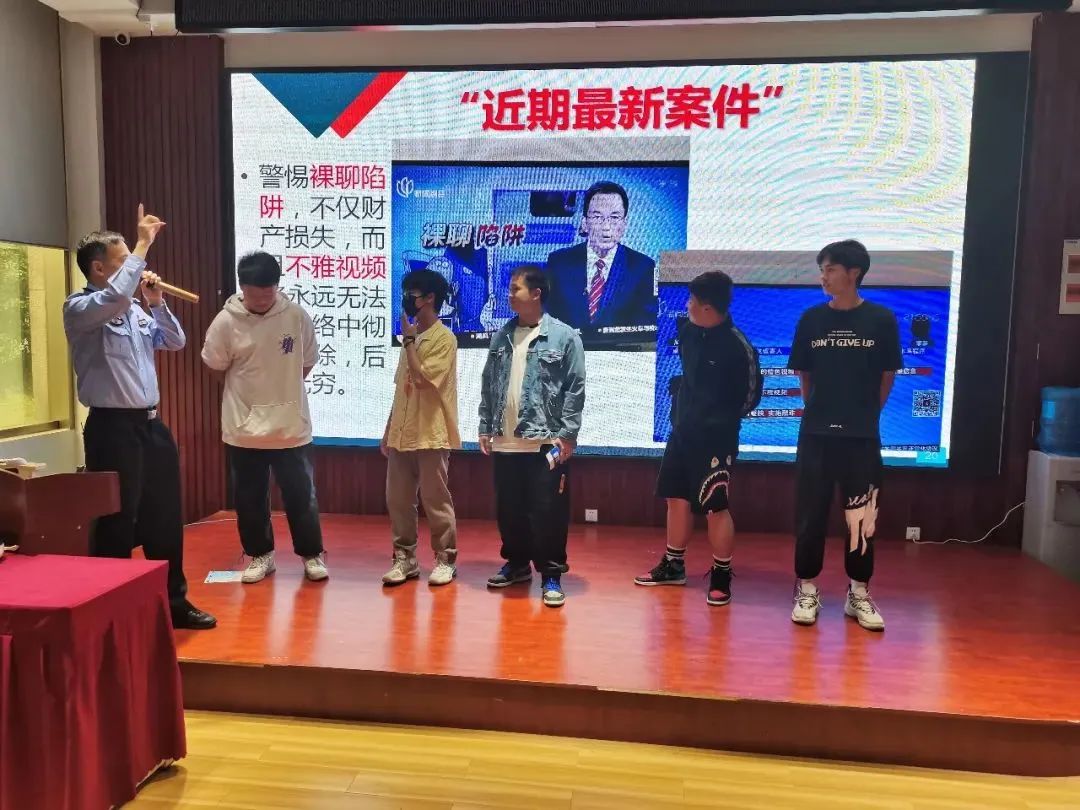 民警以发生在学生身边鲜活的真实案例 为教材,有针对性的向同学们讲解电信网络诈骗的危害和防范知识点。